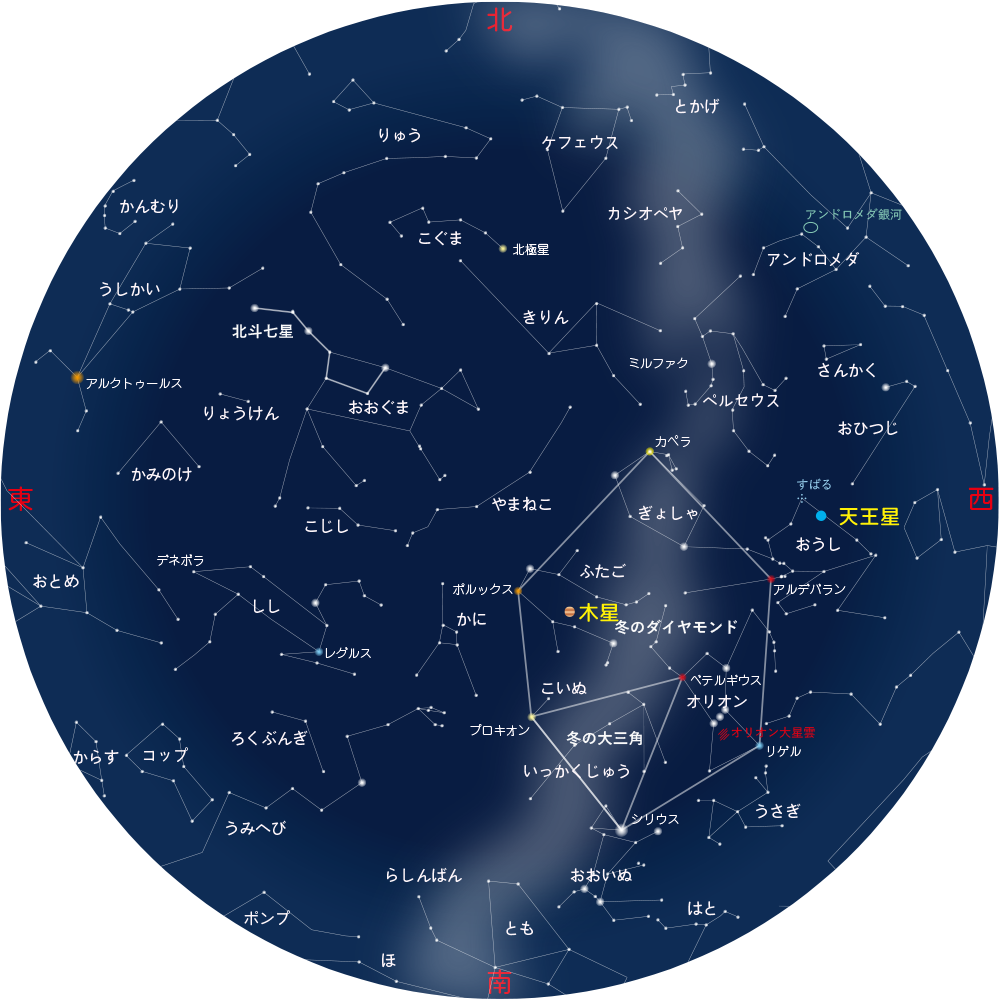| 夏季の等級(mag/□") | 冬季の等級(mag/□") | |