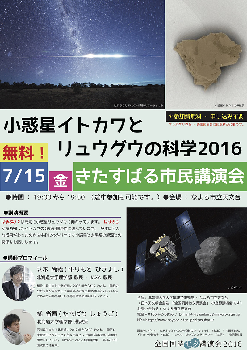 演 題:「小惑星イトカワとリュウグウの科学2016」
