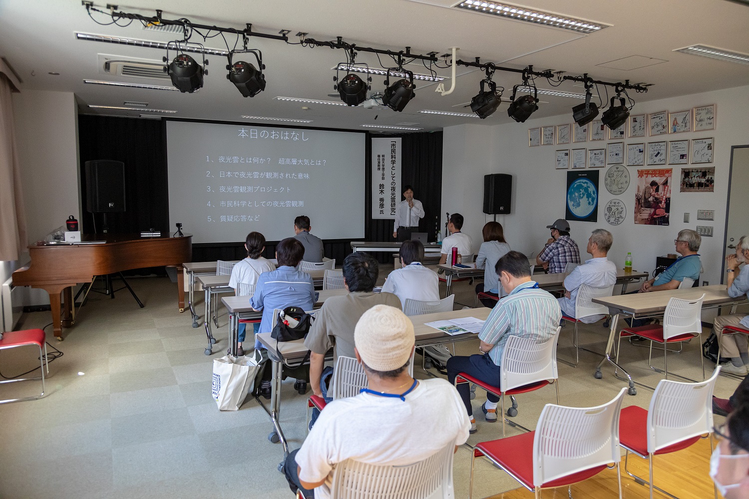 「市民科学としての夜光雲研究」をテーマに、明治大学の鈴木秀彦准教授が講演しました。鈴木准教授は、なよろ市立天文台に夜光雲観測用のカメラを設置しており実際に過去に2度観測に成功しています。