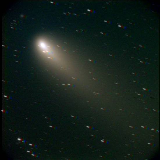 | 撮影機材 40cmの望遠鏡に冷却CCDカメラで撮影 露出各40秒 カラー合成処理(彗星の動きに合わせて合成) 明るさは約8等星、このときの地球からの距離は約2300万キロ |