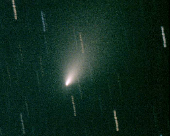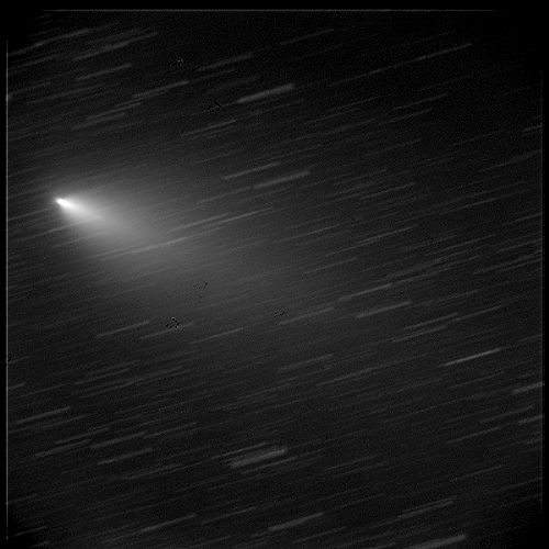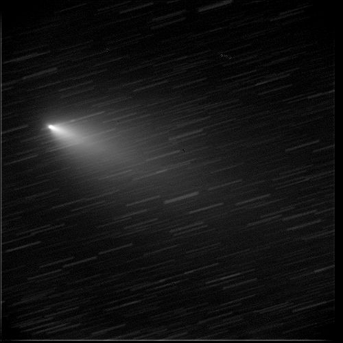 | 撮影機材 40cmの望遠鏡に冷却CCDカメラで撮影 露出各10秒×30枚 合成処理(彗星の動きに合わせて合成) 午後11時31分〜午後11時39分、8分間の動き |