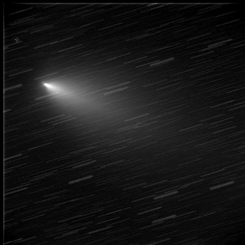 | 撮影機材 40cmの望遠鏡に冷却CCDカメラで撮影 露出各10秒×30枚 合成処理(彗星の動きに合わせて合成) 午後9時53分〜午後10時01分、8分間の動き 明るさは約6等星 |