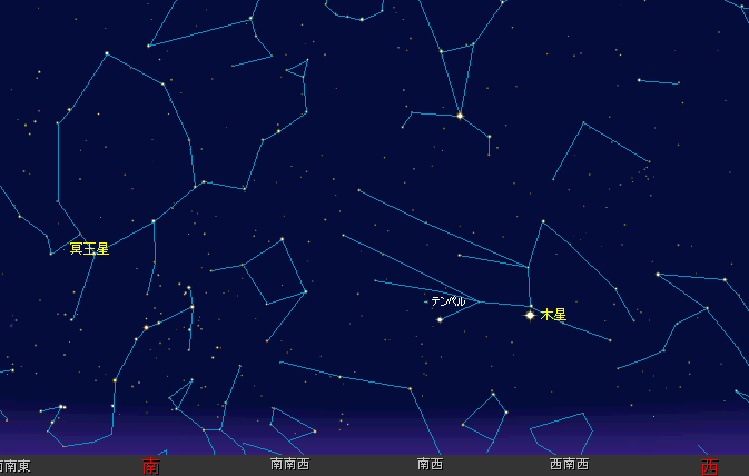| 2005年7月4日 午後9時のテンペル第一彗星の位置 (名寄市) |