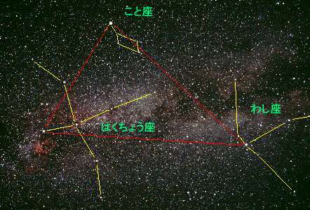 こと座のベガ、わし座のアルタイル、はくちょう座の