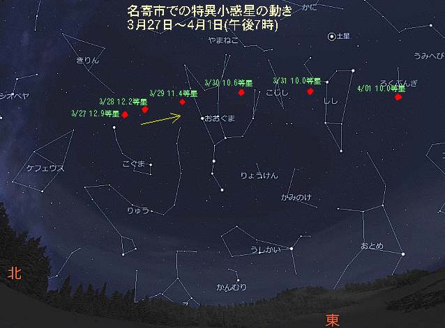 明るさ +14.7等星、地球からの距離 約1千300万キロ |