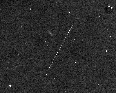 | 中央のボーッとした天体は、おおぐま座のNGC3549銀河、地球から1億2千800万光年先にあります | ||