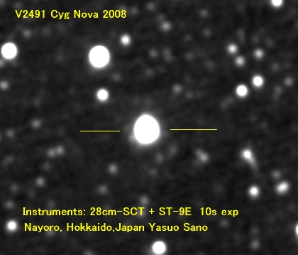 名寄市内で撮影した新星 28cm FL 1710mm 冷却CCDで撮影