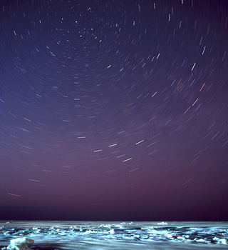 | 2001年4月2日1時2分 網走市北浜にて撮影 露出 15分間 ペンタックス6×7 広角レンズ フィルム エクタクローム E200 (注)この写真はホームページ掲載のために、圧縮され たイメージで、原盤はさらに素晴らしい写りです *この画像は、岩渕氏のご厚意により転載ご許可いただい ております(無断転載禁)。 |