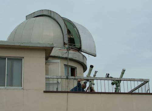 | 天文台ベランダ・ここで各種撮影が行われました(デジカメ担当の村上恭彦氏が撮影中) |