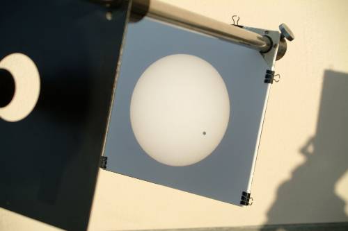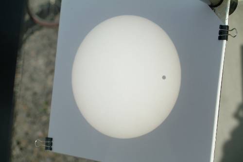 | 野外に設置した10センチの望遠鏡・投影版にクッキリと写したされました |