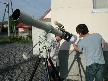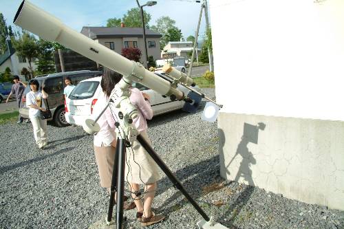 | 野外での観望用、口径10cm太陽投影版使用 | ||