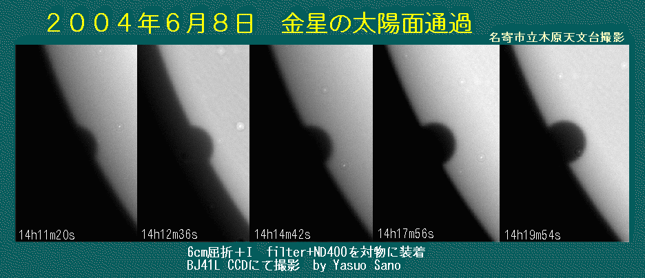 | 2004年6月8日 午後2時30分〜6時30 30分間隔 *金星の大きさは実際に見える大きさです。 |