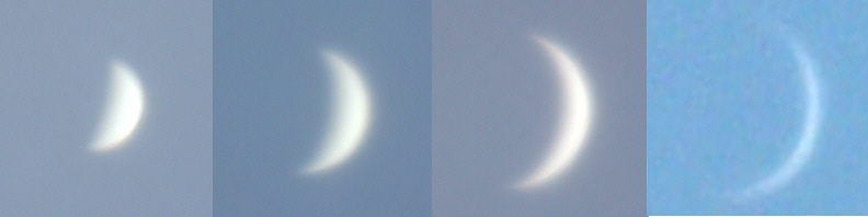 | 撮影日、左から4月11日、4月29日、5月14日、5月27日 天文台25cm望遠鏡にデジタルカメラで昼間に撮影 |