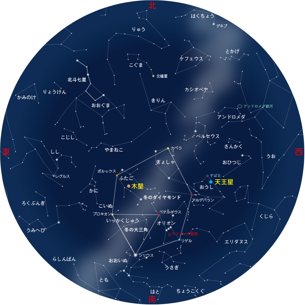| 夏季の等級(mag/□") | 冬季の等級(mag/□") | |