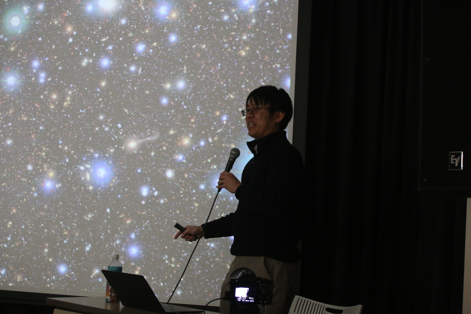 今回のテーマは「巨大望遠鏡で観る100億年前の銀河」。巨大望遠鏡を駆使した遠方銀河探査を専門としている但木謙一教授(北海学園大学)を講師に 国立極地研究所の片岡龍峰准教授を講師に、遠方銀河の見つけ方、2000年代の「すばる望遠鏡」の活躍、近年のジェームズ・ウェッブ宇宙望遠鏡の成果など、はるか彼方の銀河の観測についてお話しいただきました。