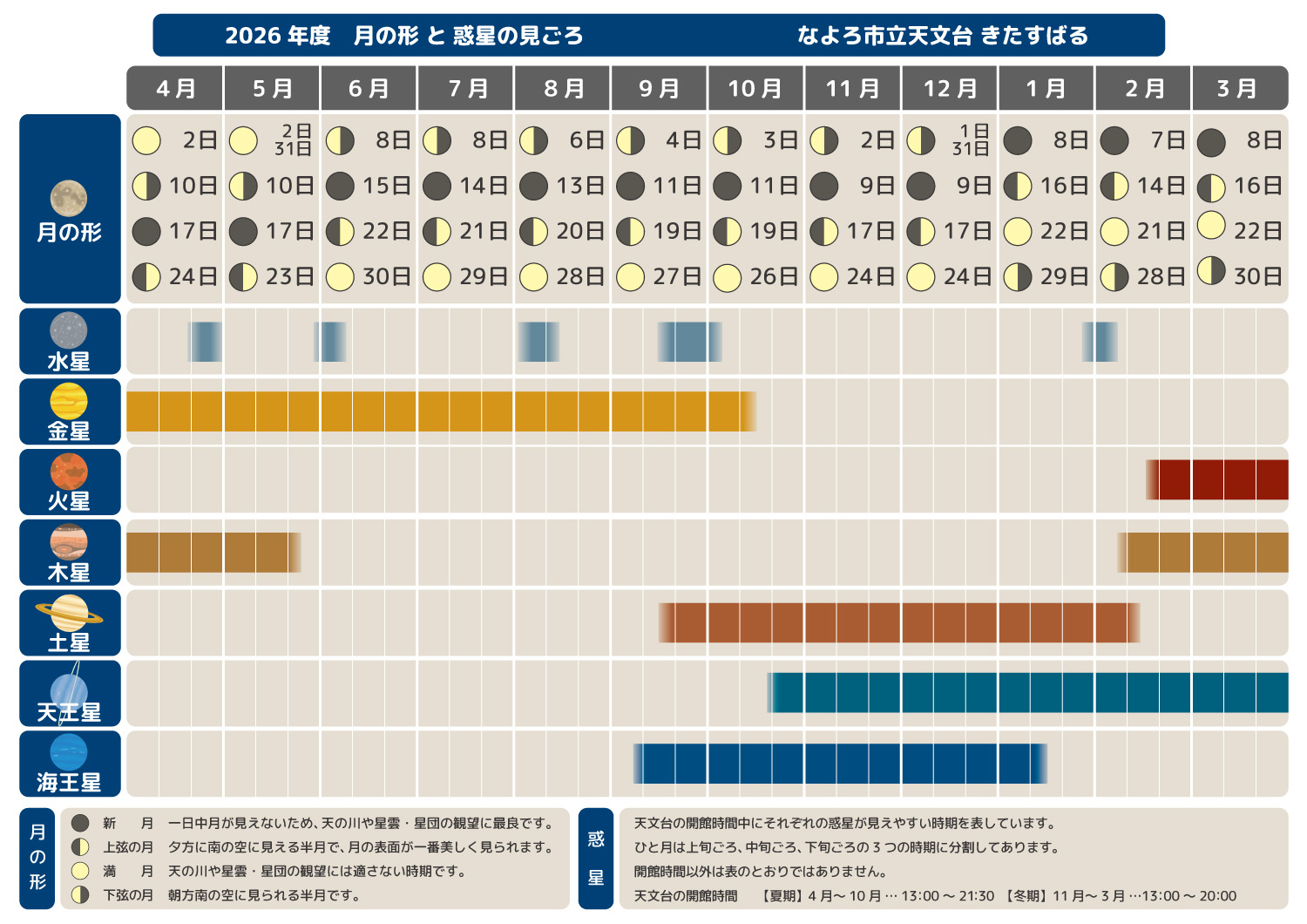 | 夏季の等級(mag/□") | 冬季の等級(mag/□") | |