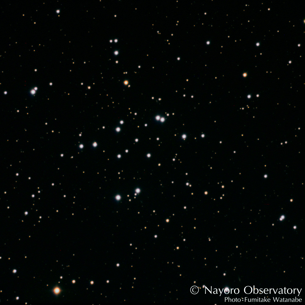 ペルセウス座にある散開星団です。この写真ではまばらに見えますが、5等級の明るさがあり双眼鏡や望遠鏡で楽しめる天体です。 位 置 RA 02:42.0 Dec +42:46 (J2000.0) 距 離 1,430光年 等級(V) 5.5
