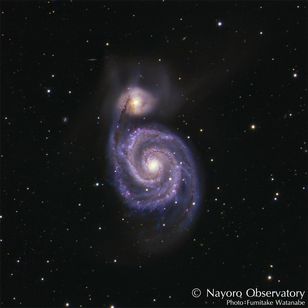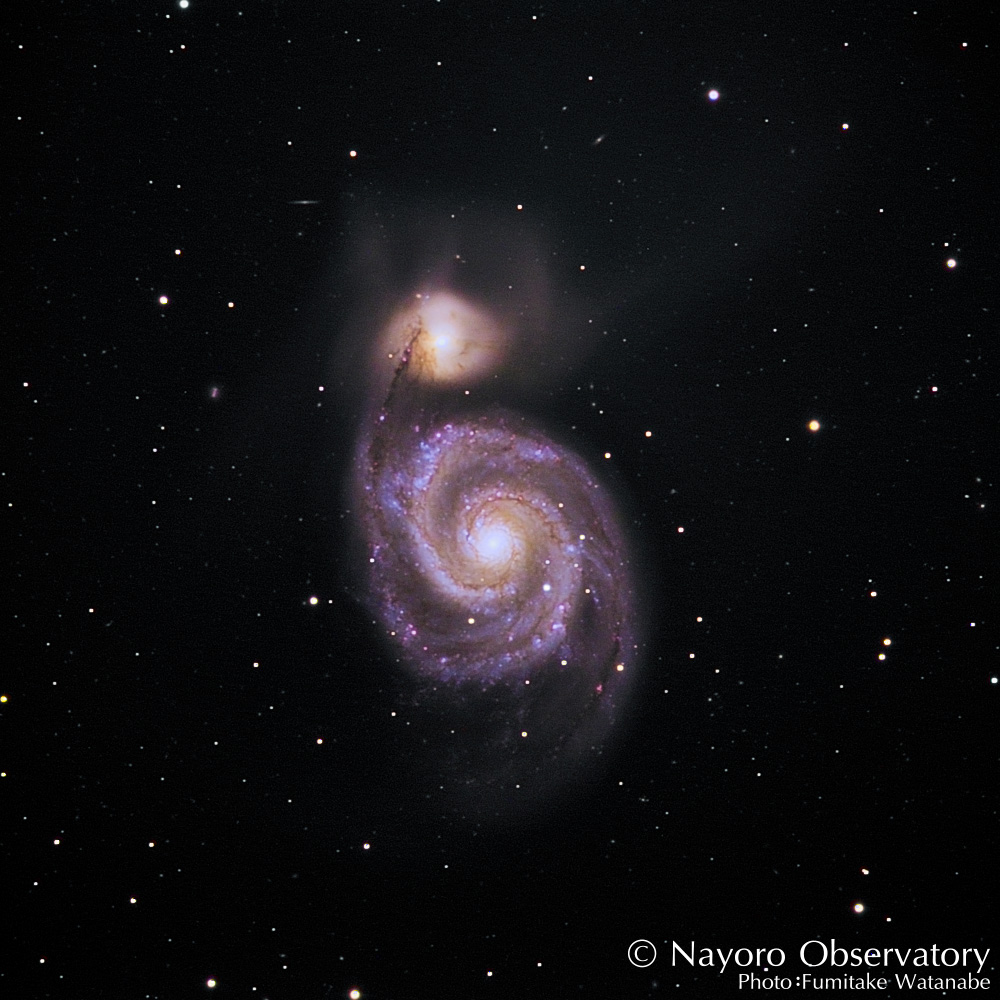 小さい方の銀河にはNGC5195という番号がついており、渦巻きの腕で繋がっている様子は大変美しく銀河の中でも特に人気の天体です。