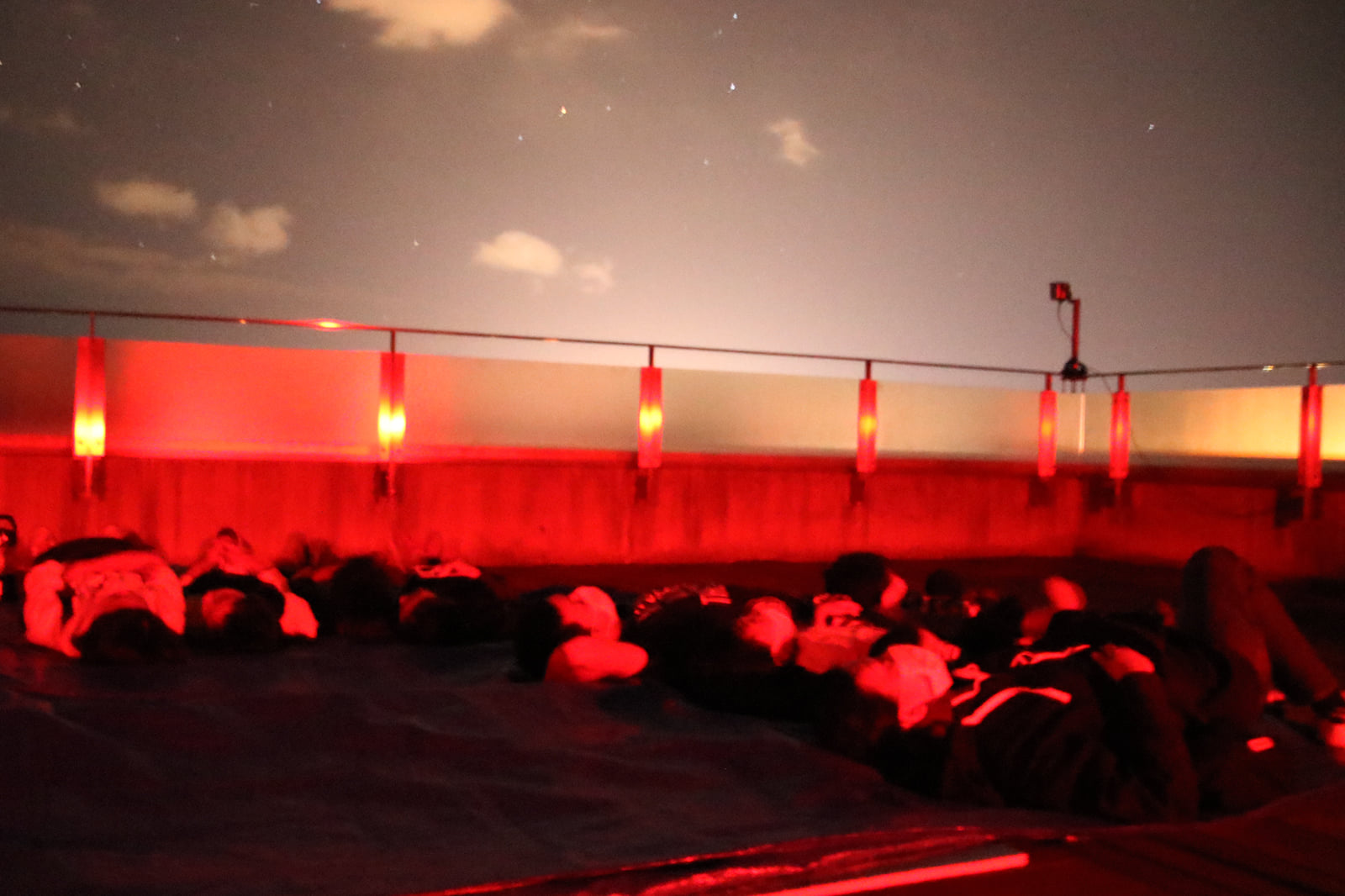 2020年8月12日(水曜日)と13日(木曜日)、ペルセウス座流星群観望会が開催されました。今年は、コロナウイルス感染拡大防止のため、時間帯を20時~、21時~、22時~の3つに分け、それぞれ人数制限を設定。皆が距離をとりながら寝転んで、空を見上げました。