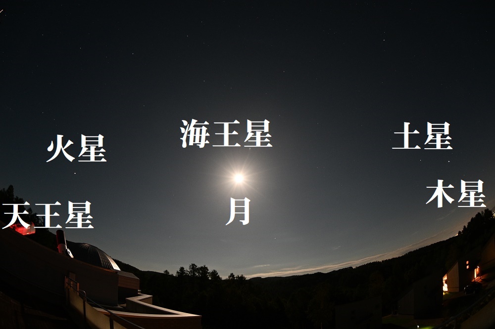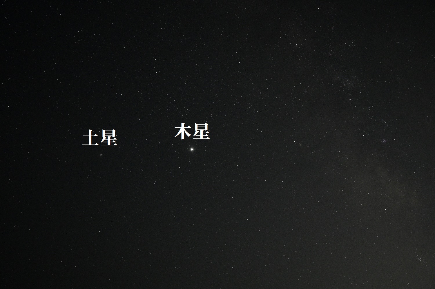 いて座で衝を迎えた木星(7月14日)、土星(7月21日)は観望会期間中、日没後南の空に明るく見えています。縞模様の木星と立派な環の土星、二つの惑星の個性的な姿を望遠鏡で見ませんか。