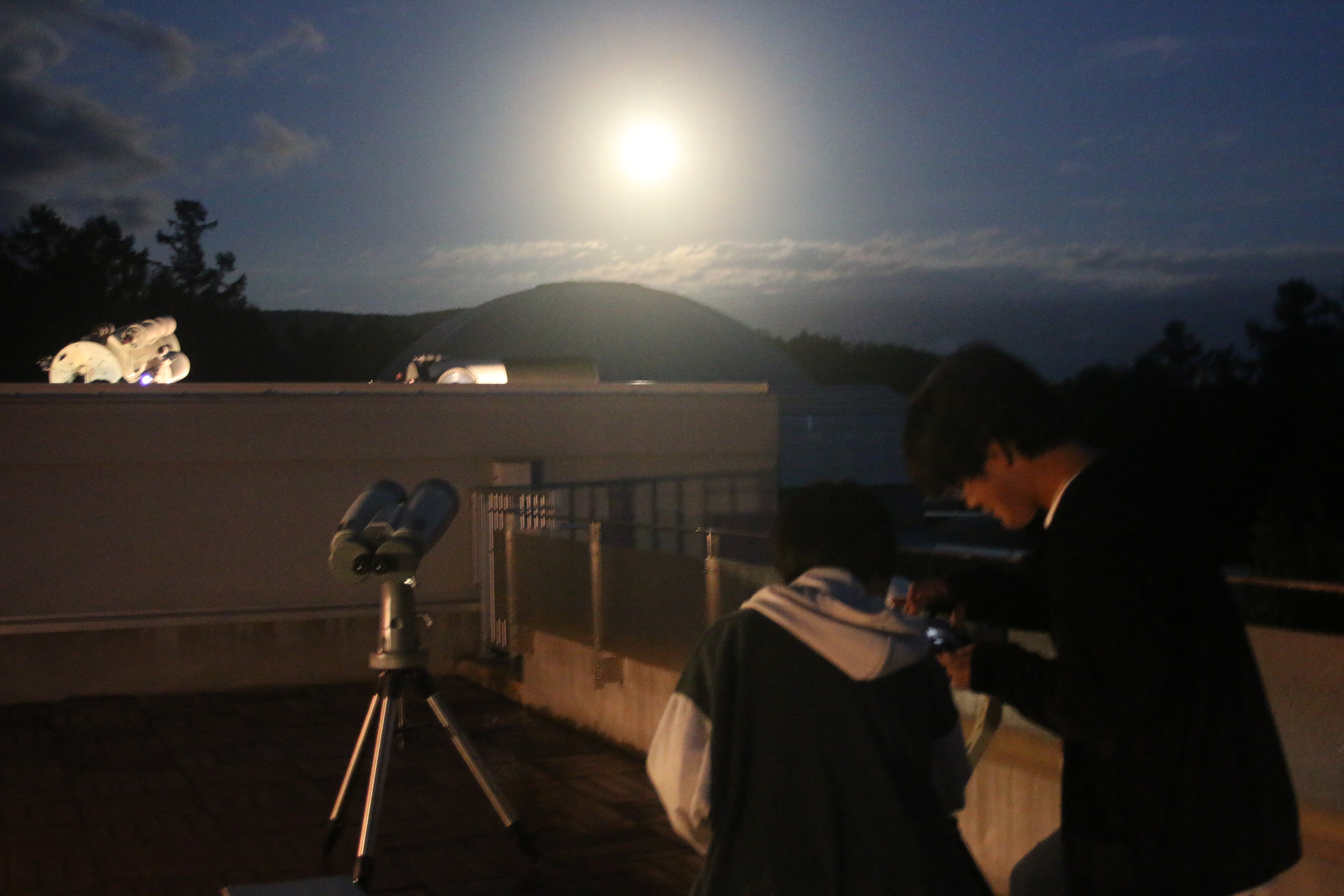 期間中は雨天の日もありましたが、天候に恵まれた夜には、望遠鏡で月を見ることができました。中秋の名月当日は、本来休館日のところ夜間のみ開館し、晴れた夜空のもとで月をお楽しみいただきました。