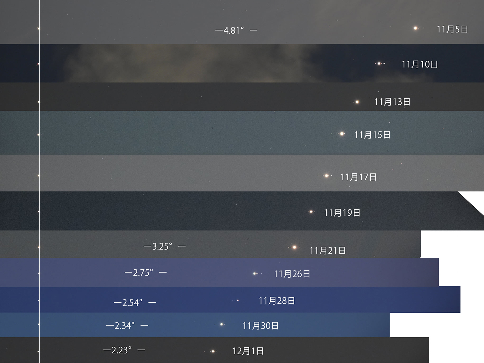 ![]() 小山浩さんから「木星と土星の接近の連続写真(11月5日-12月1日)」 |