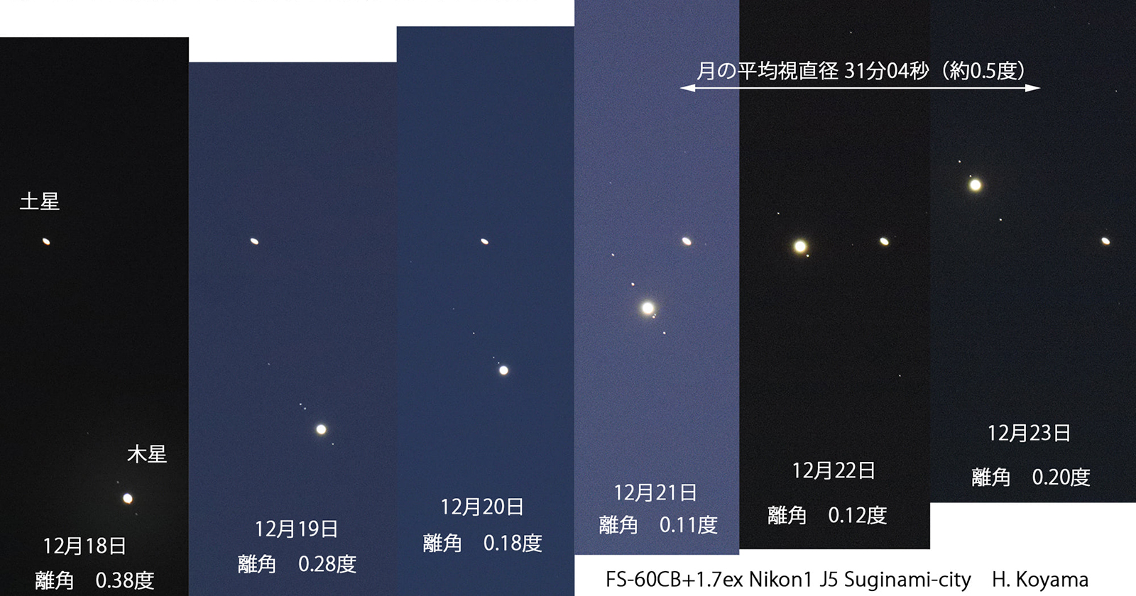 ![]() 小山浩さんから「木星と土星の接近の連続写真(12月18日-23日)」 |